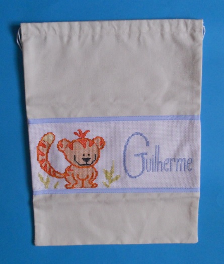 Saco em tons cru com barra azul bébé - 100% Algodão - Tamanho 40x30cm